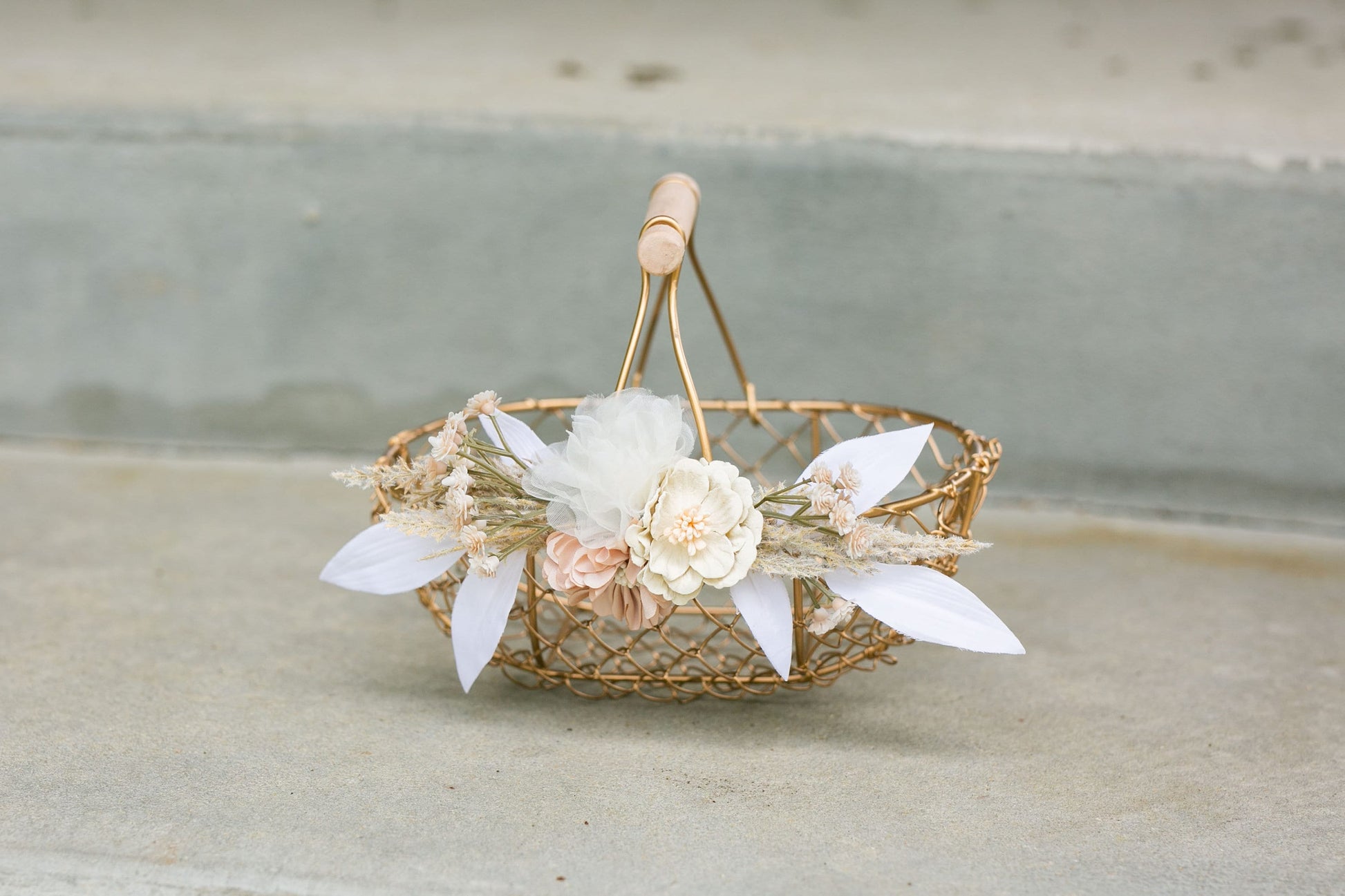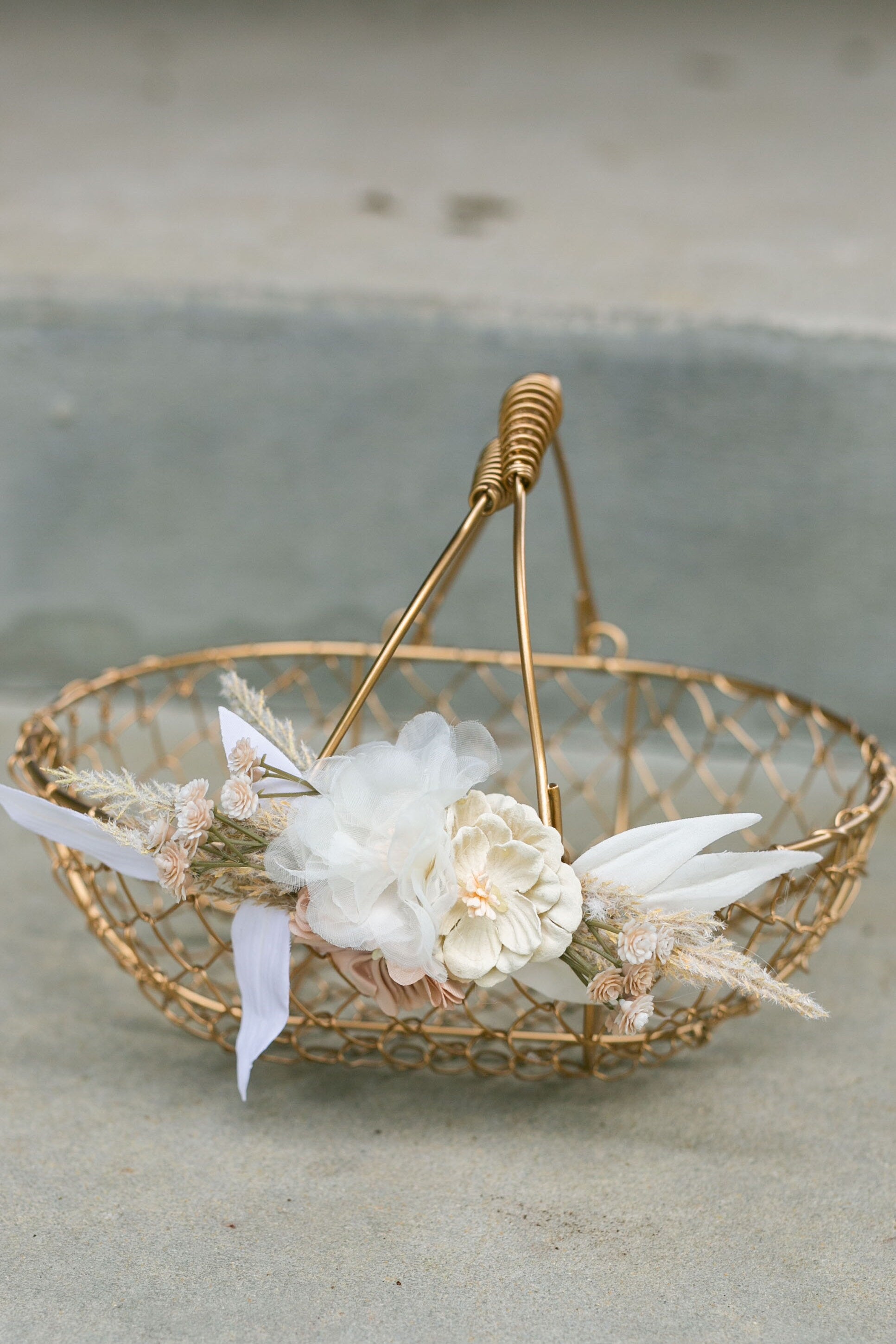 Boho Champagne Gold Flower Girl Basket: Desert Wedding Decor