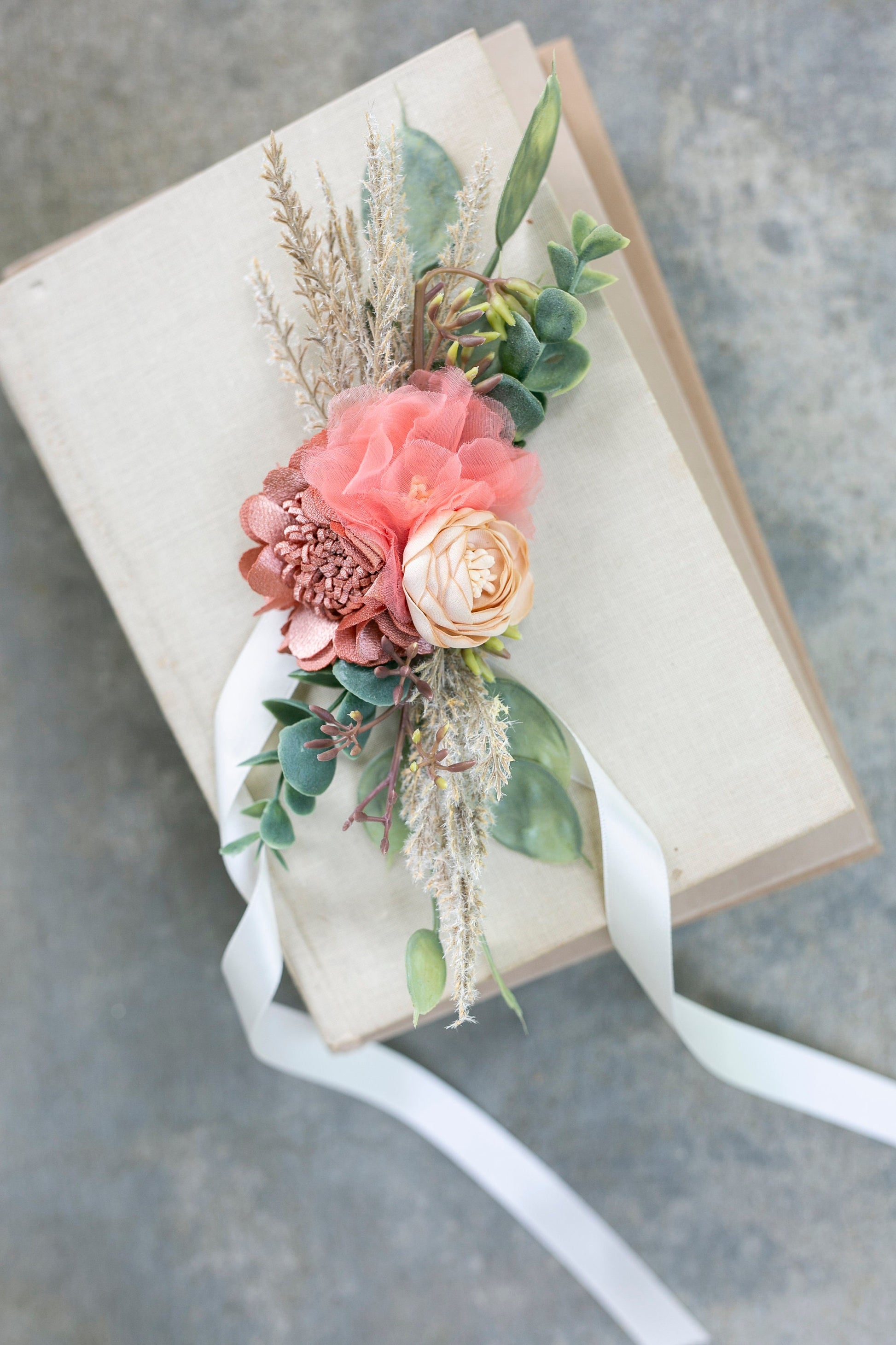 Floral Wedding Corsage: Eucalyptus, Pampas Grass & Fabric Wildflowers