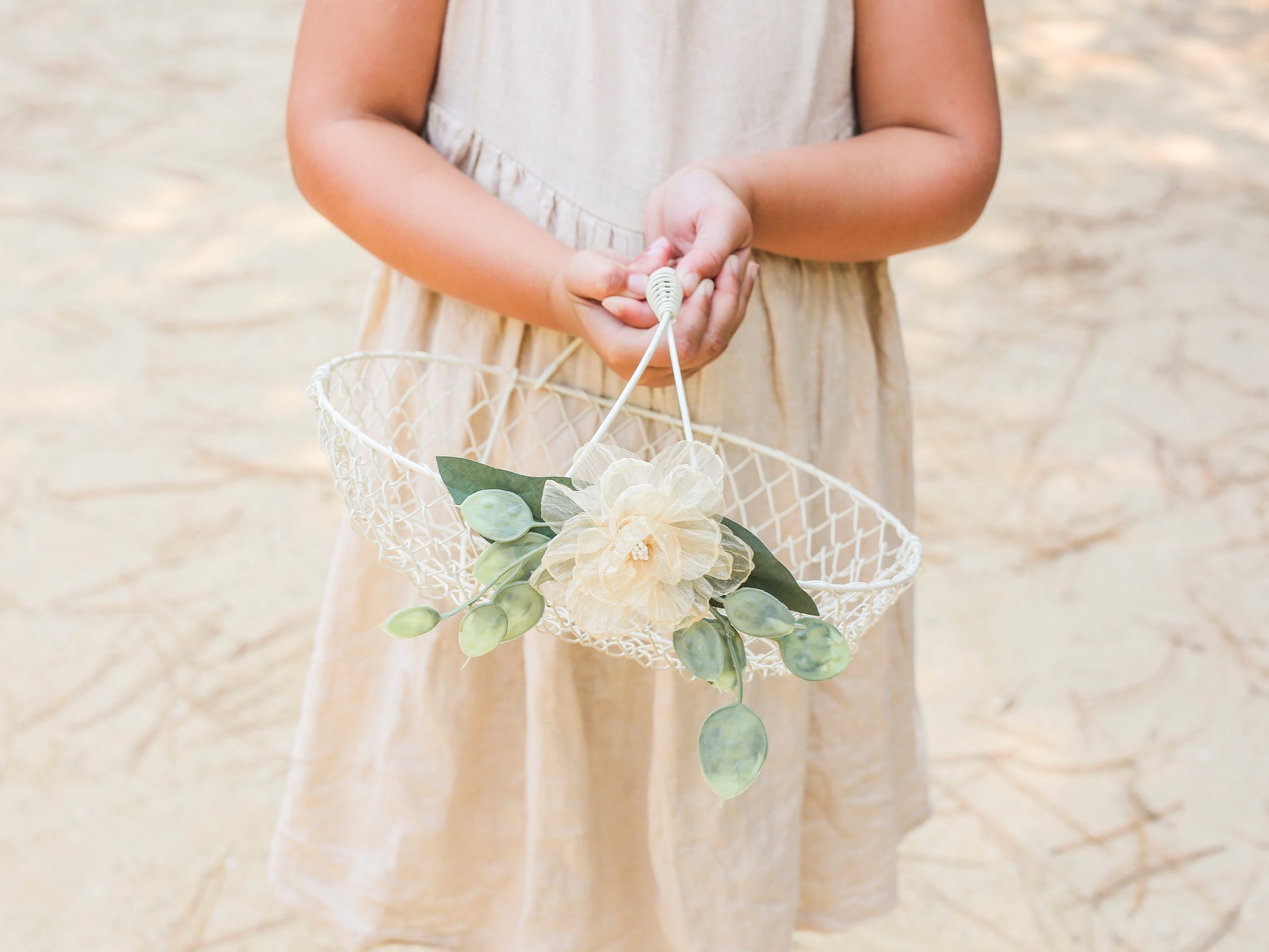 • Basket dimensions for large basket: 11"L x 8"W x 3.5"H, (6.5"H with handle) Single, fixed wire handle - perfect for older flower girls!