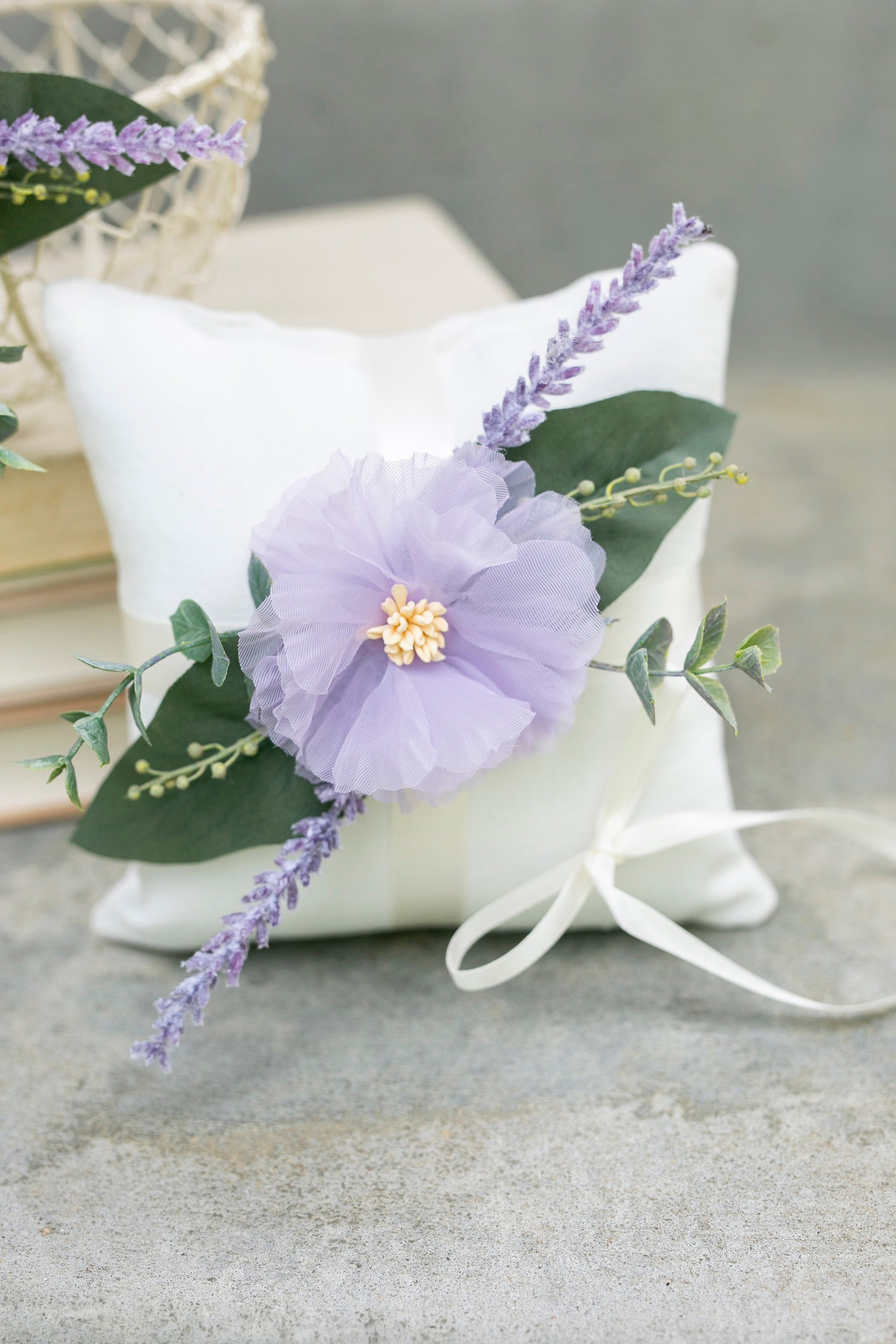 ♥ MEET LILAC On our ivory wire basket flower girl basket, dark eucalyptus leaves and lavender sprigs beautifully compliment a soft lavender organza poppy – a durable accessory for flower girls of all sizes!