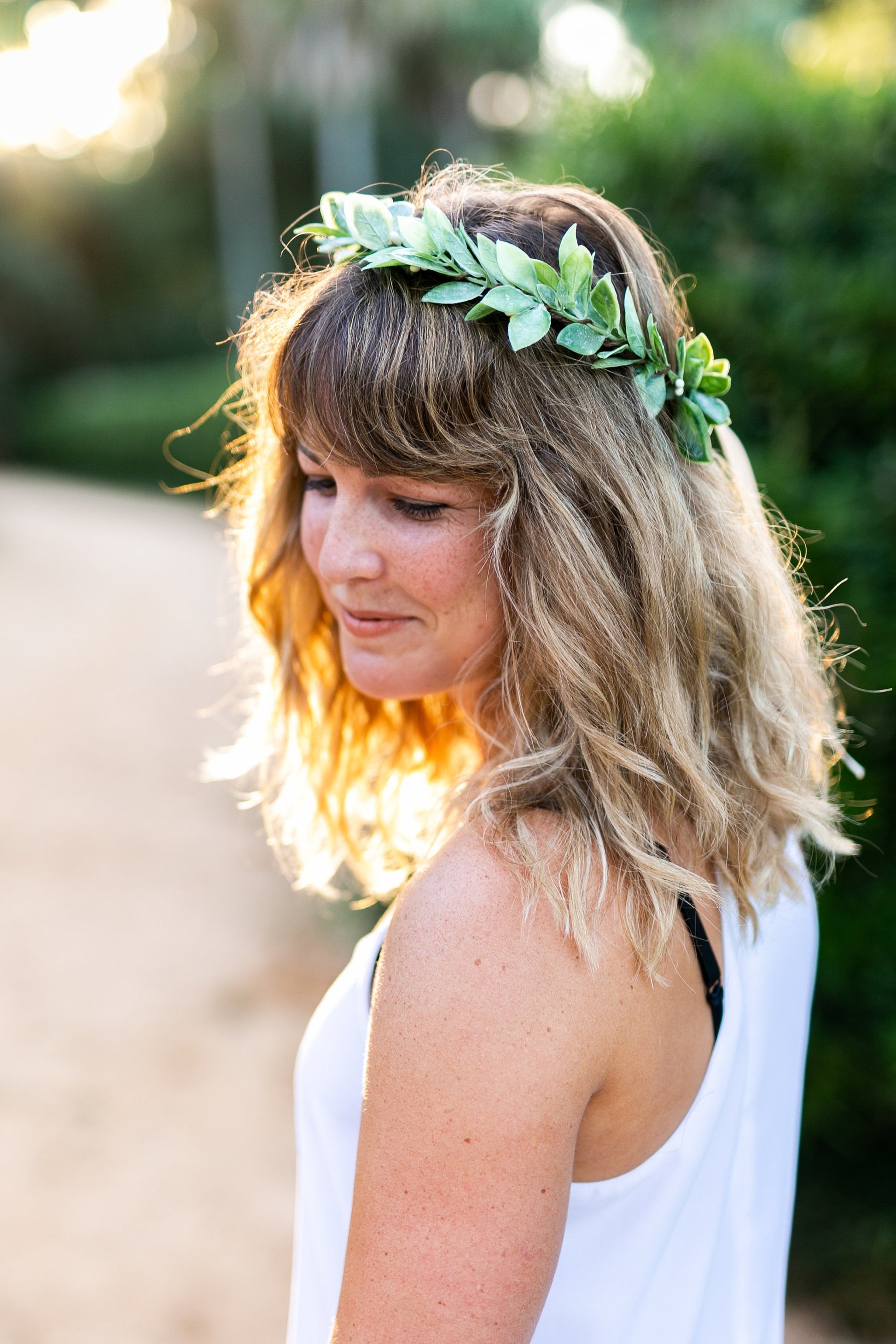 Citron Lemon Leaf Flower Crown: Wedding Greenery Halo with Silk Ribbon