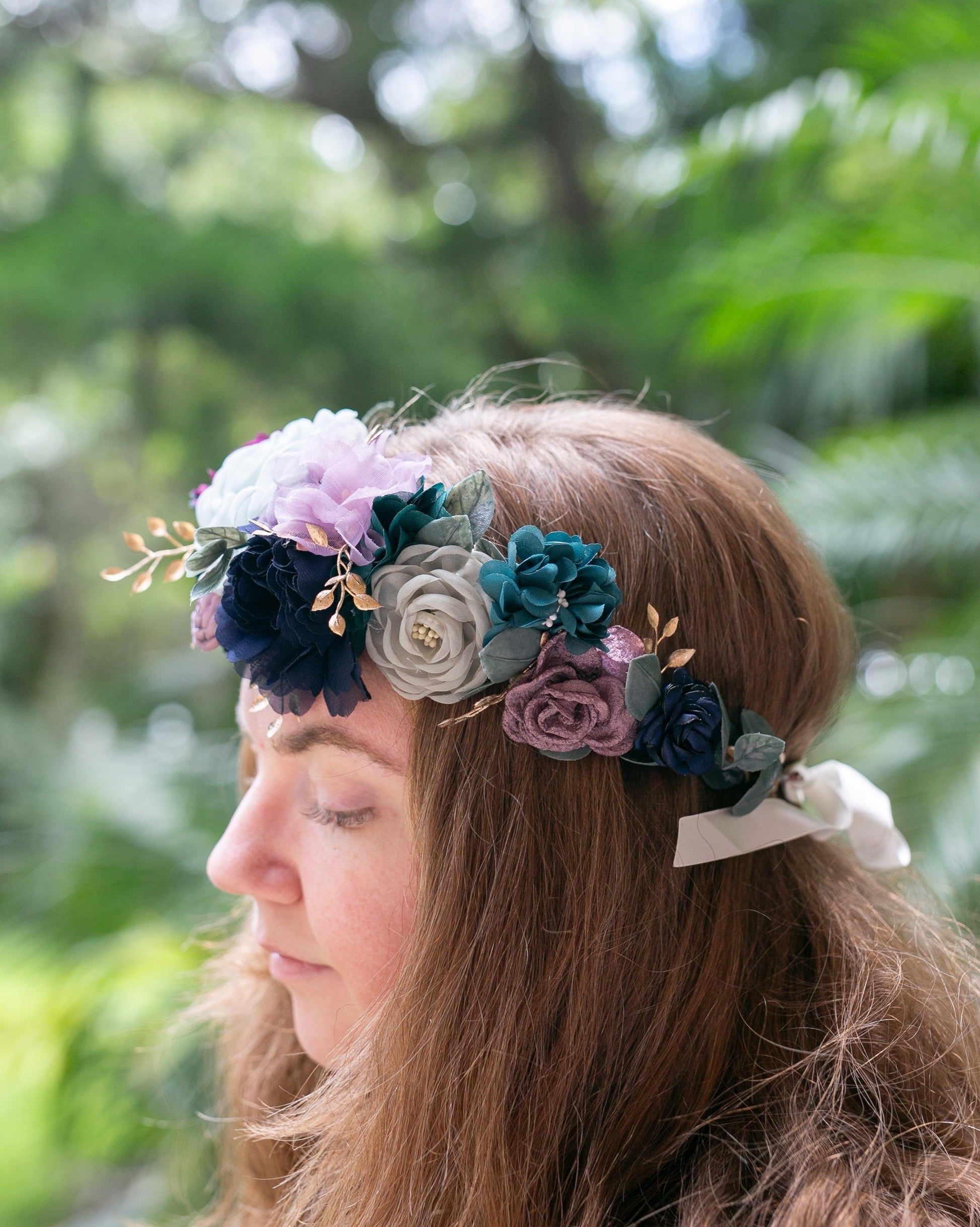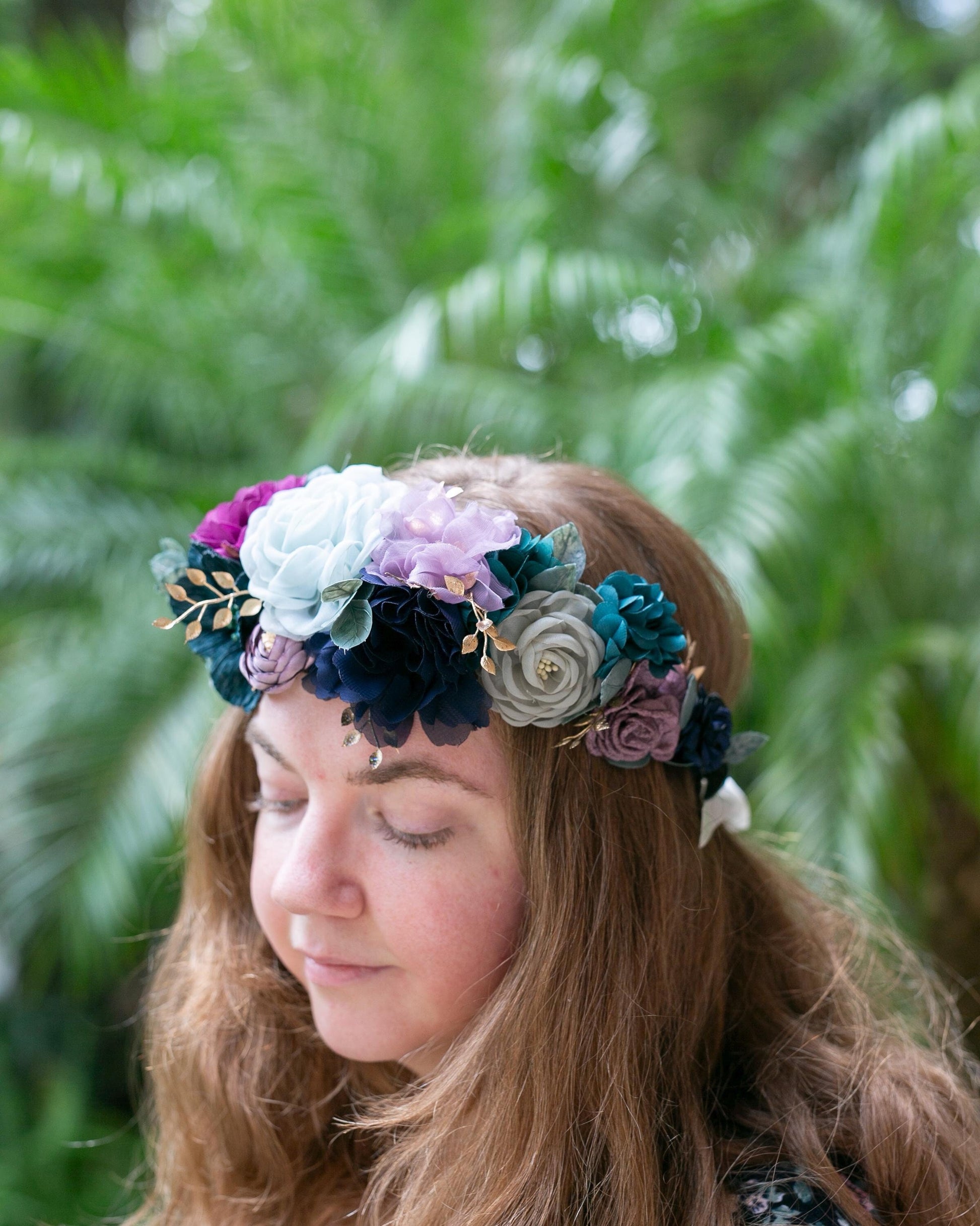 Midnight Summer Wedding Flower Crown: Purple & Blue Floral Hair Wreath