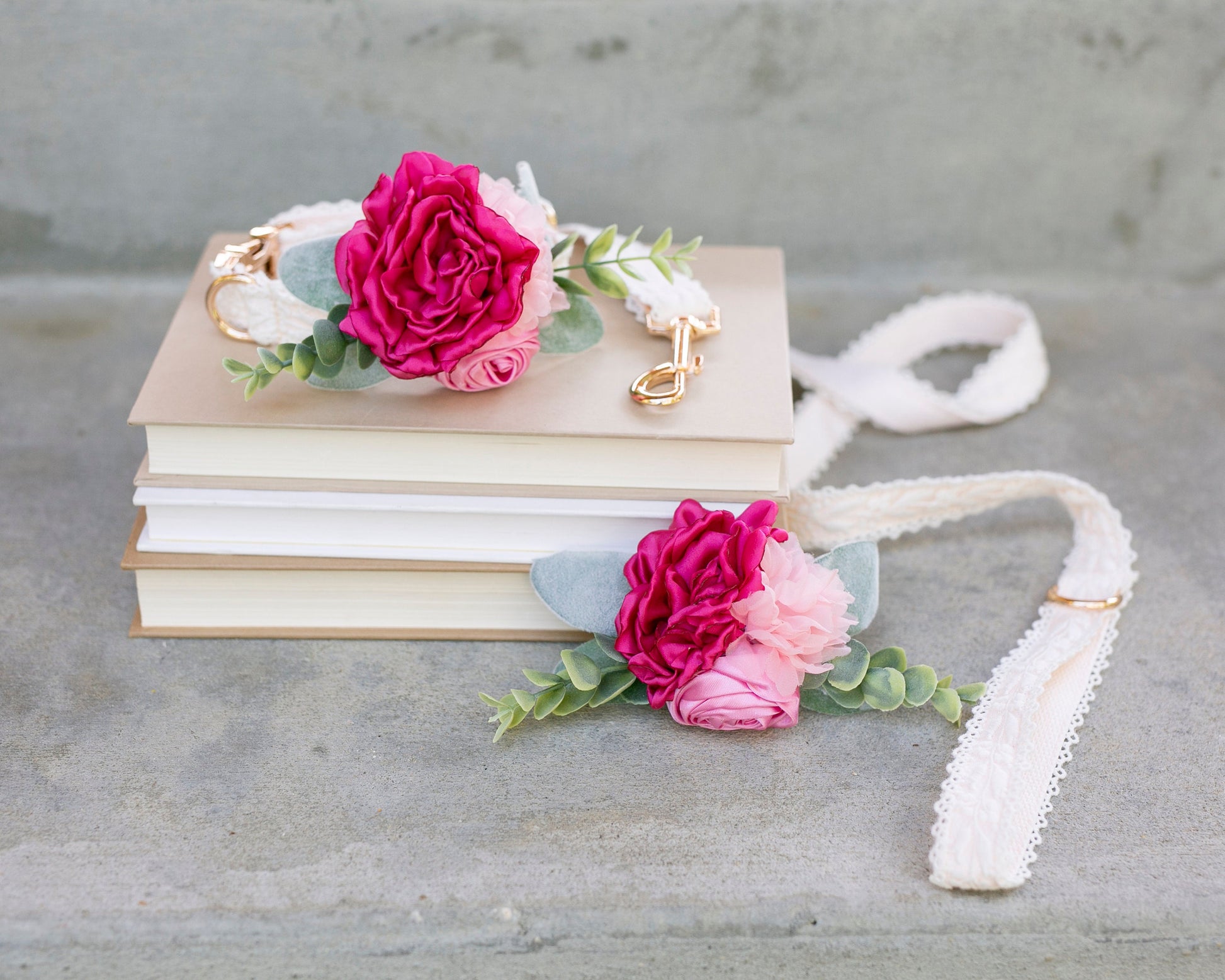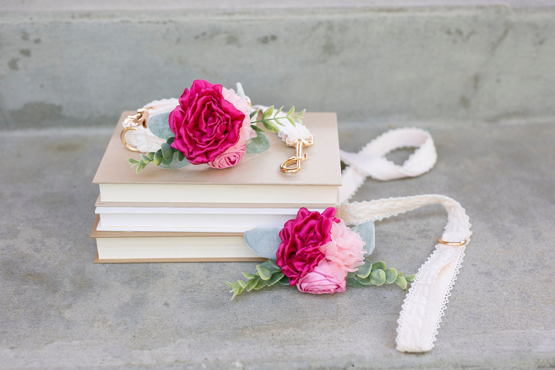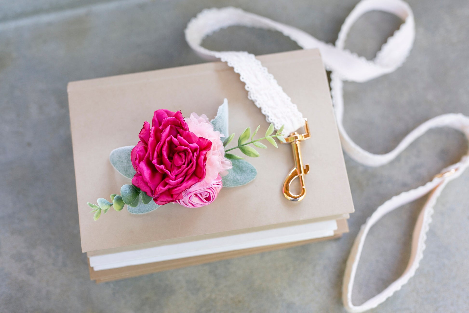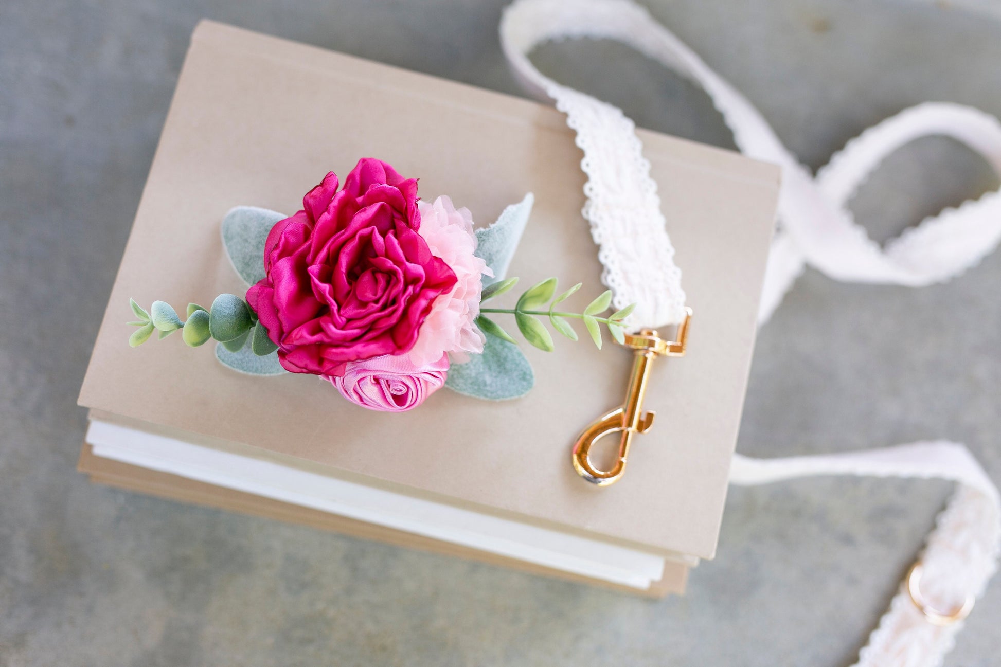 Cheerful Shades of Bright Pink Attachable & Removeable Accessory for Dog Wedding Collar | Floral Collar for Pet | Attachable Leash Decor | Ring Bearer Bridal Dog Corsage
