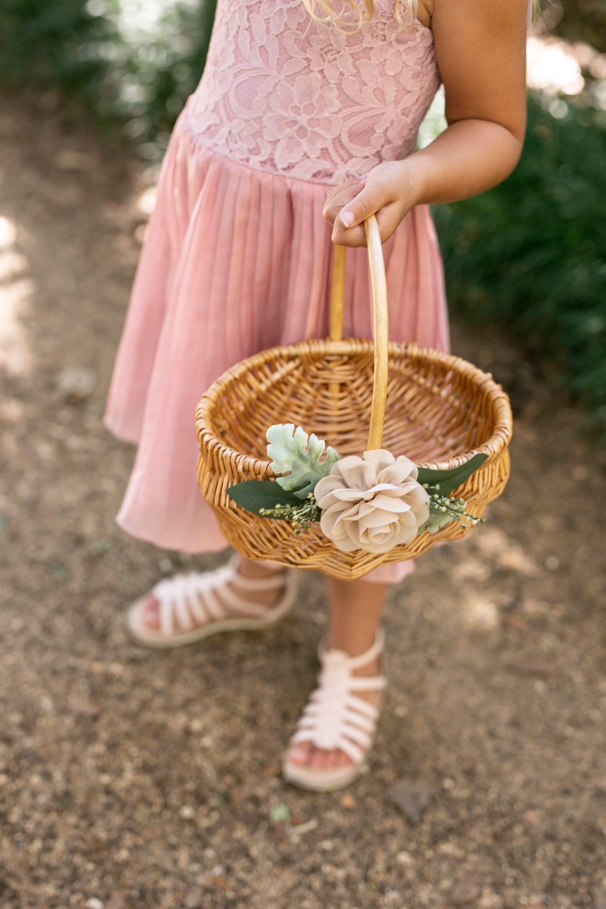 Bristol Rustic Willow Flower Girl Basket with Greenery & Chiffon Flower