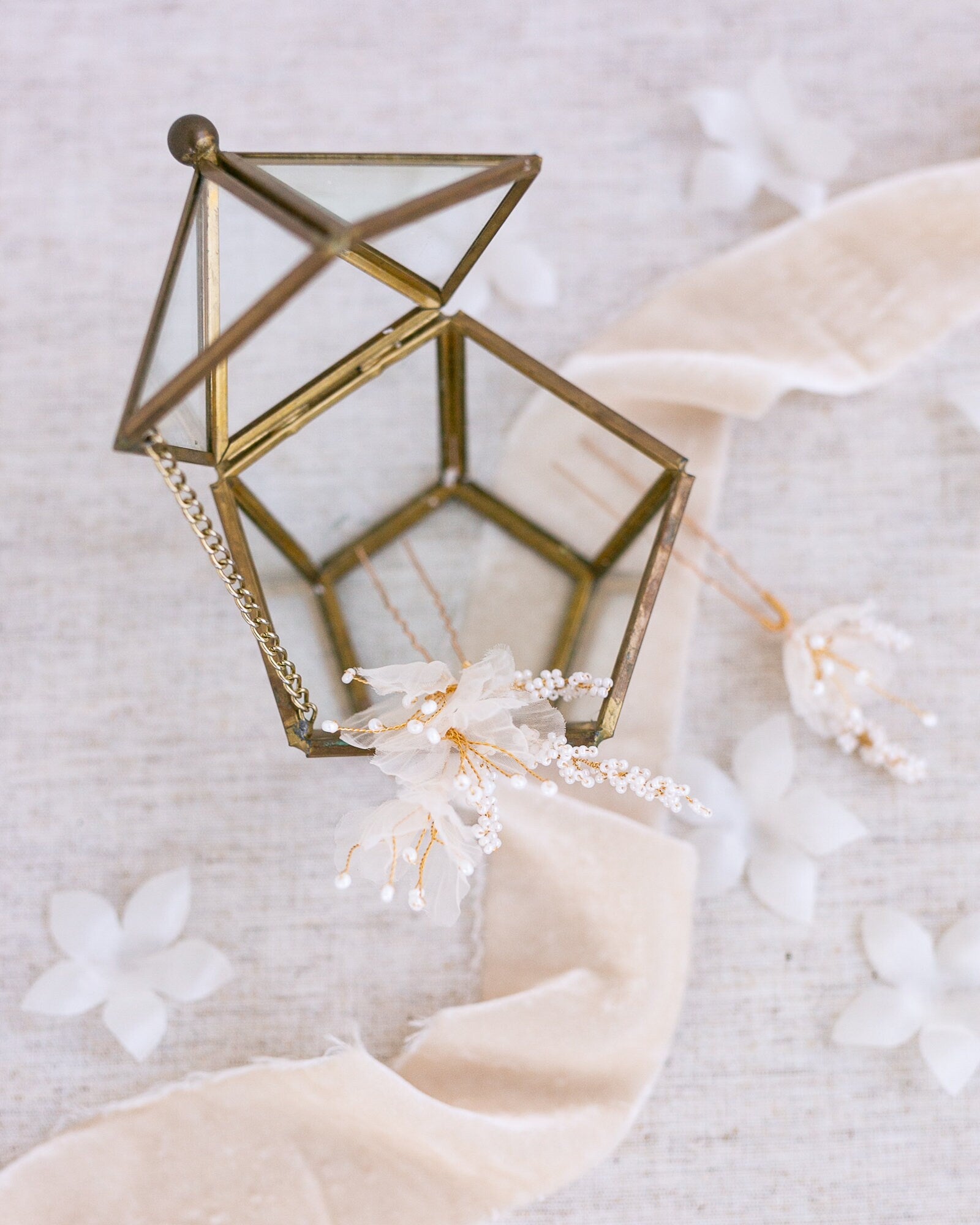 Use together to create a one-of-a-kind bridal hairpiece OR use throughout a cascading hairstyle to create a beautiful, feminine effect.