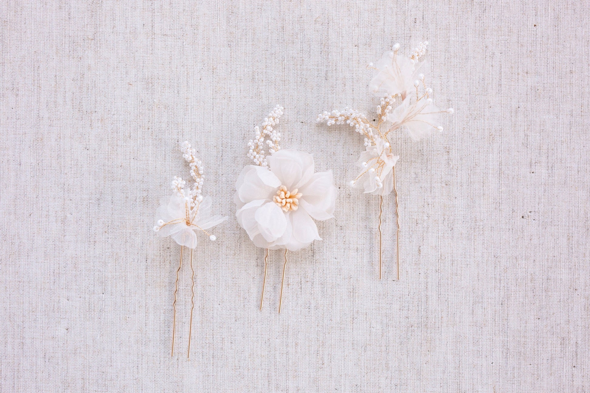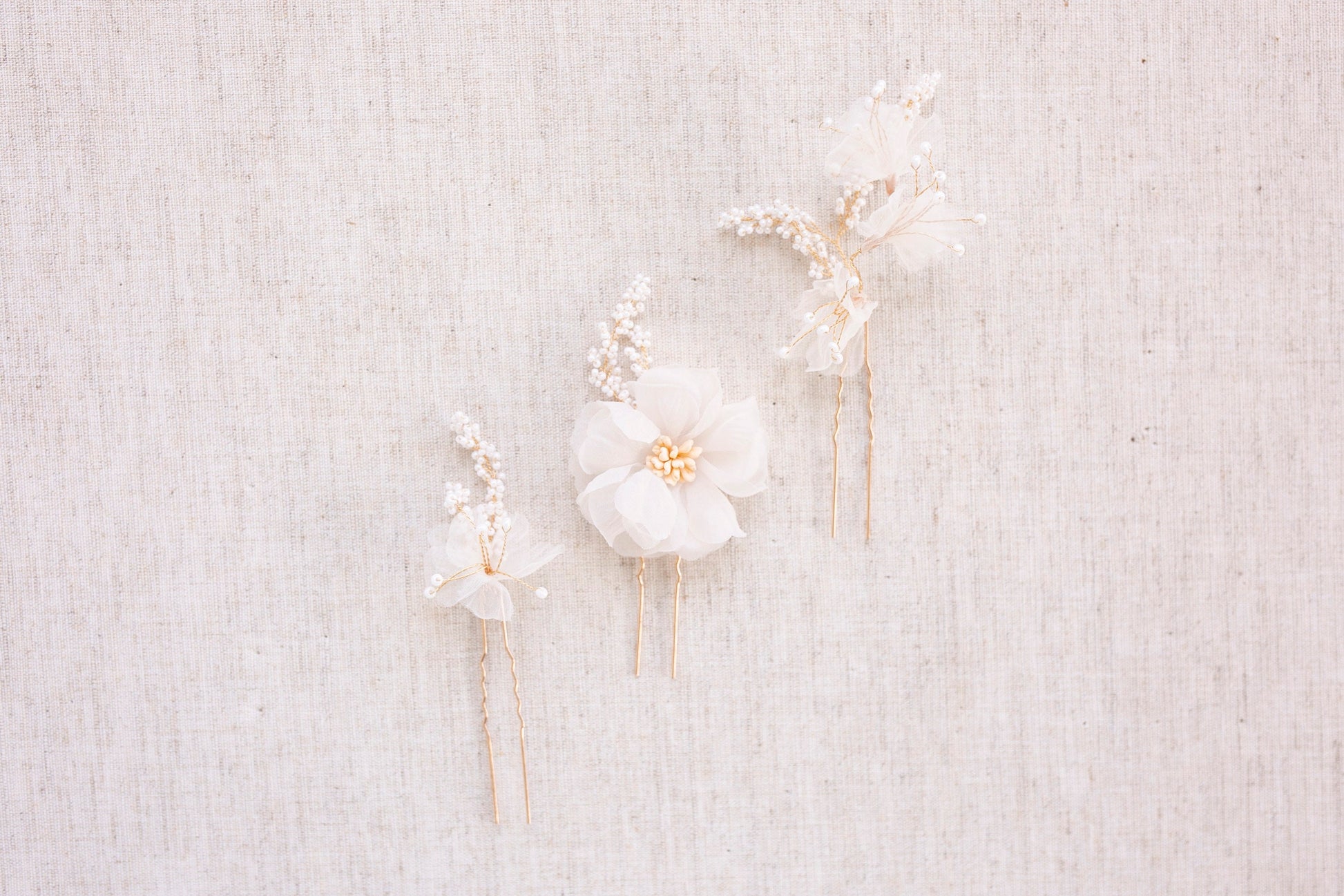 • Set of 3 perfectly paired hairpins Styling details (ie. ribbon or unattached flower petals) not included.