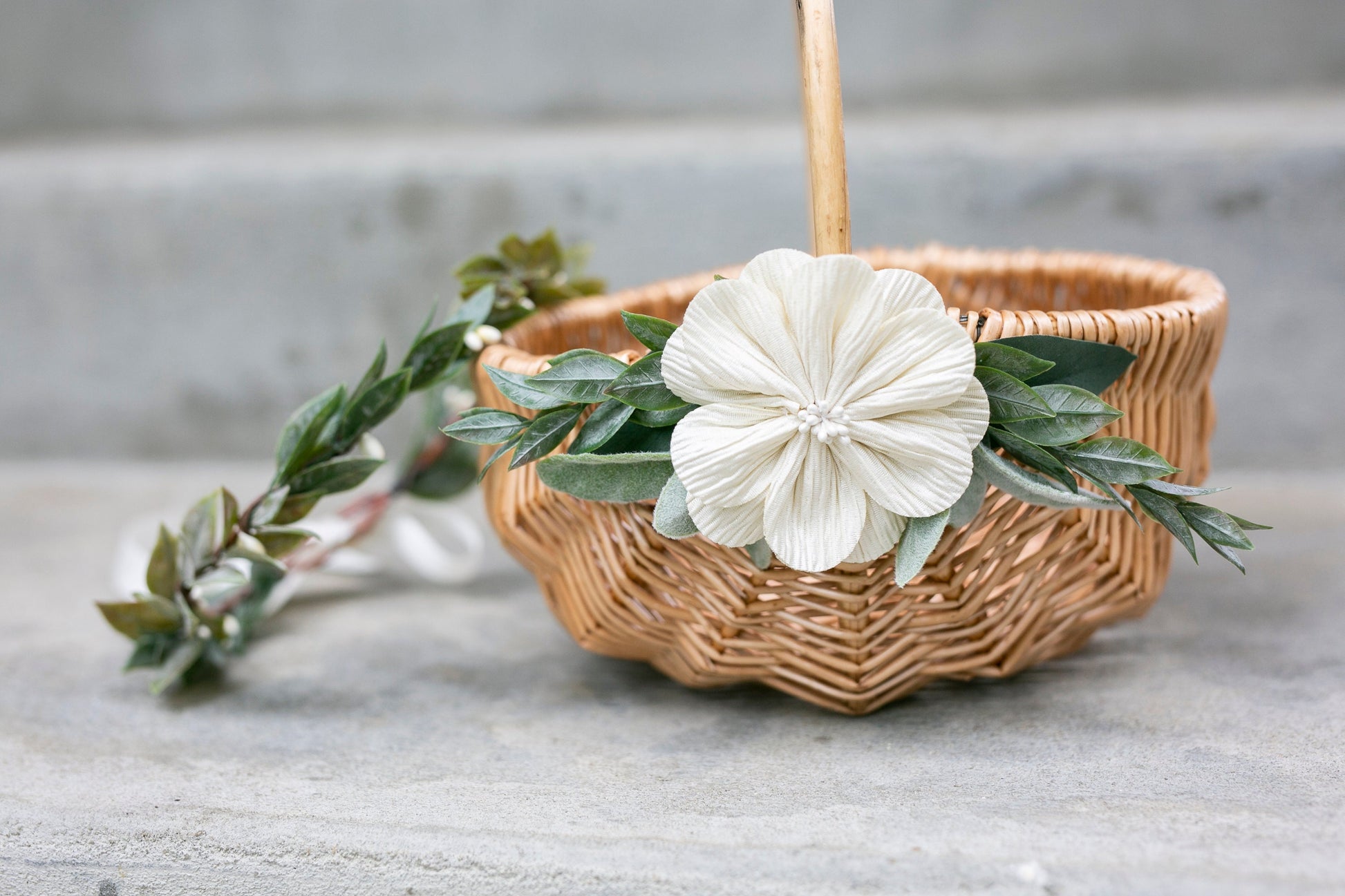 Willow Flower Girl Basket: Handmade Wicker Wedding Basket with Greenery